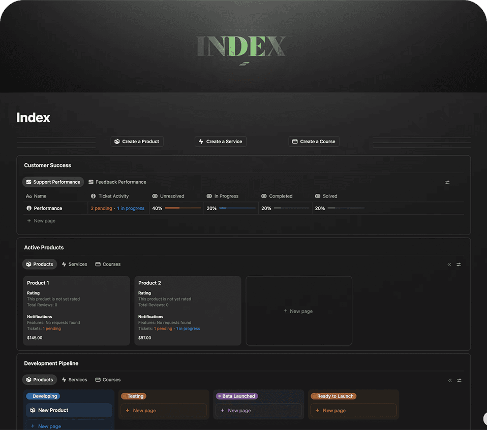 Stop building from scratch. Get proven templates that organize your business, track your work, and help you stay on top of everything—no setup required.